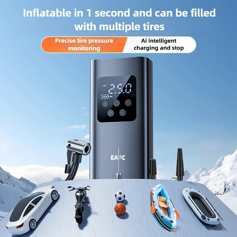 Este inflador portátil es tu solución rápida para neumáticos desinflados, ideal para cualquier aventura. Con su diseño compacto y potente, te asegurará que estés siempre listo para cualquier desafío en la carretera o el sendero.